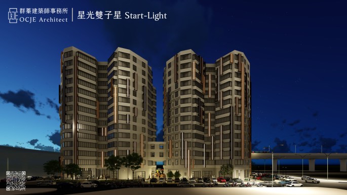 士林新光雙子星大樓本身具備顯眼之多邊形外觀造型,本案將再透過外牆整新及燈光計畫,全面性重整現有建物外牆之加掛物,並注入具現代感的嶄新外觀設計,使大樓延齡回春、風華再現,實現Starlight的視覺地標意象。